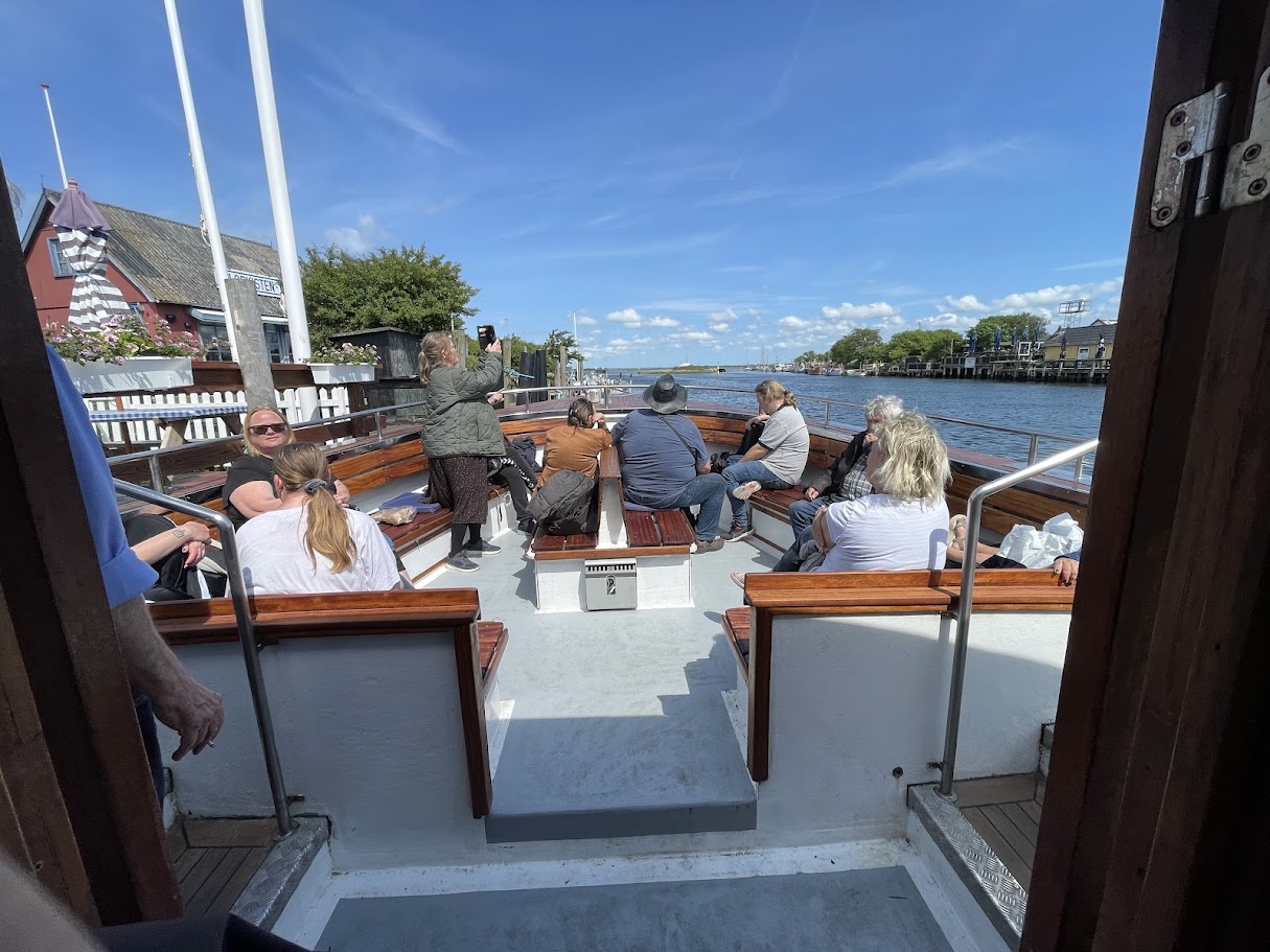 Værested Nord kl 8.30 og derefter til Værested Syd hvor vi køre fra kl 9 derefter køre bussen til Næstved. De3Huse udlevere en morgenbakke som vi spiser undervejs. I Næstved skal vi stige ombord på skibet Friheden og sejle til Karrebæksminde hvor der vil være Fællesfrokost kl 12 og derefter hygge på egen hånd eller sammen rundt på Enø 1 ½ time hvor vi også skal hilse på den berømte græshopper bro. Kl 14.30 er der sejltur retur til Næstved hvor bussen vil holde og vente på os og så går turen retur først til Værested Syd med ankomst 16.40 og derefter Værested Nord kl 17.10